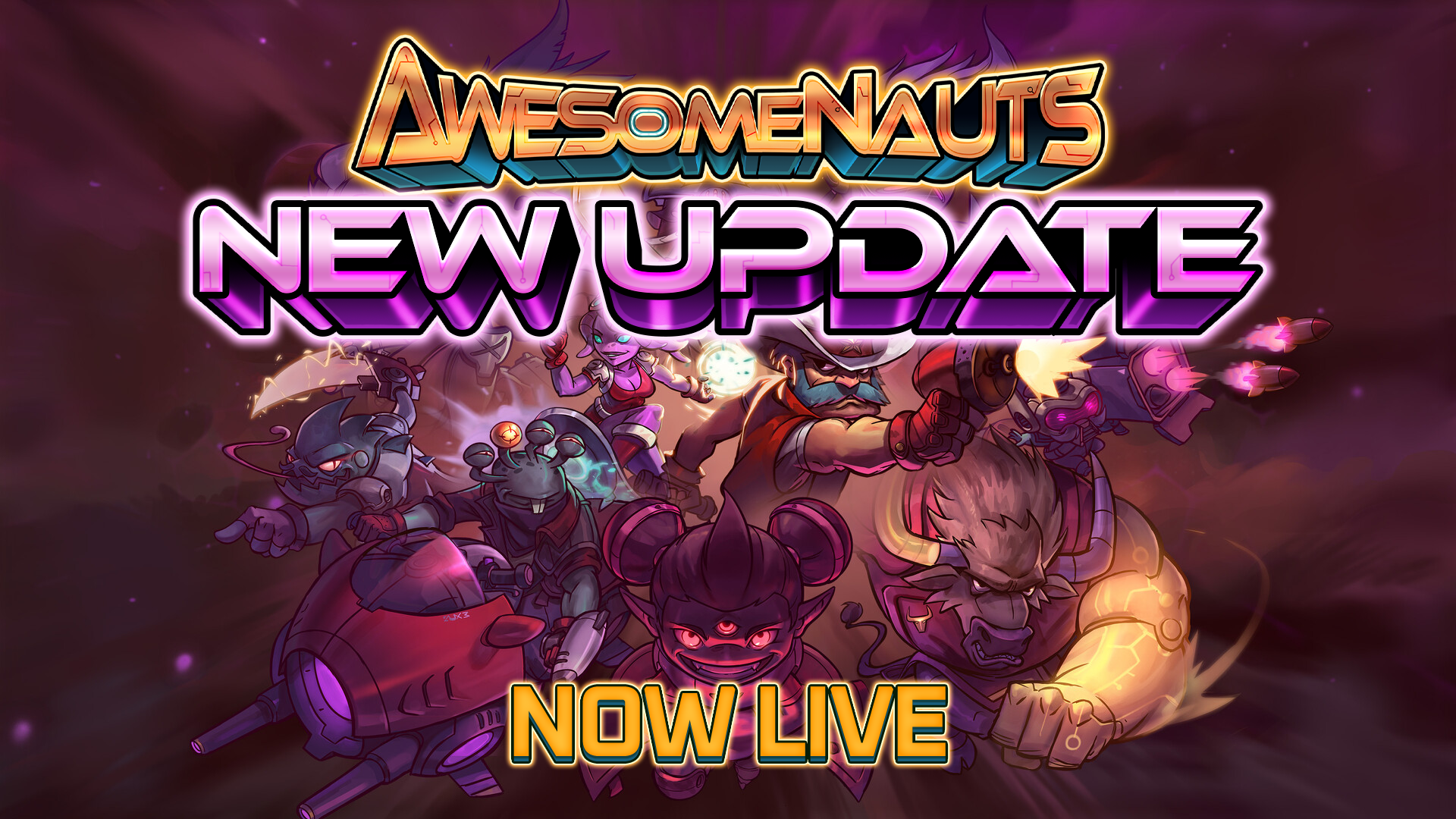 After an extensive testing period in Beta Branch with the help of our dedicated players, we are moving the new version of Awesomenauts to the main branch. All players who already own Awesomenauts on Steam can update to the new version for free and new players can purchase the game for $19.99. The paid Starstorm and Overdrive expansions are now included in the base game, all of the content and character skins that were previously pulled offline are back, and in-game chat has been re-enabled.