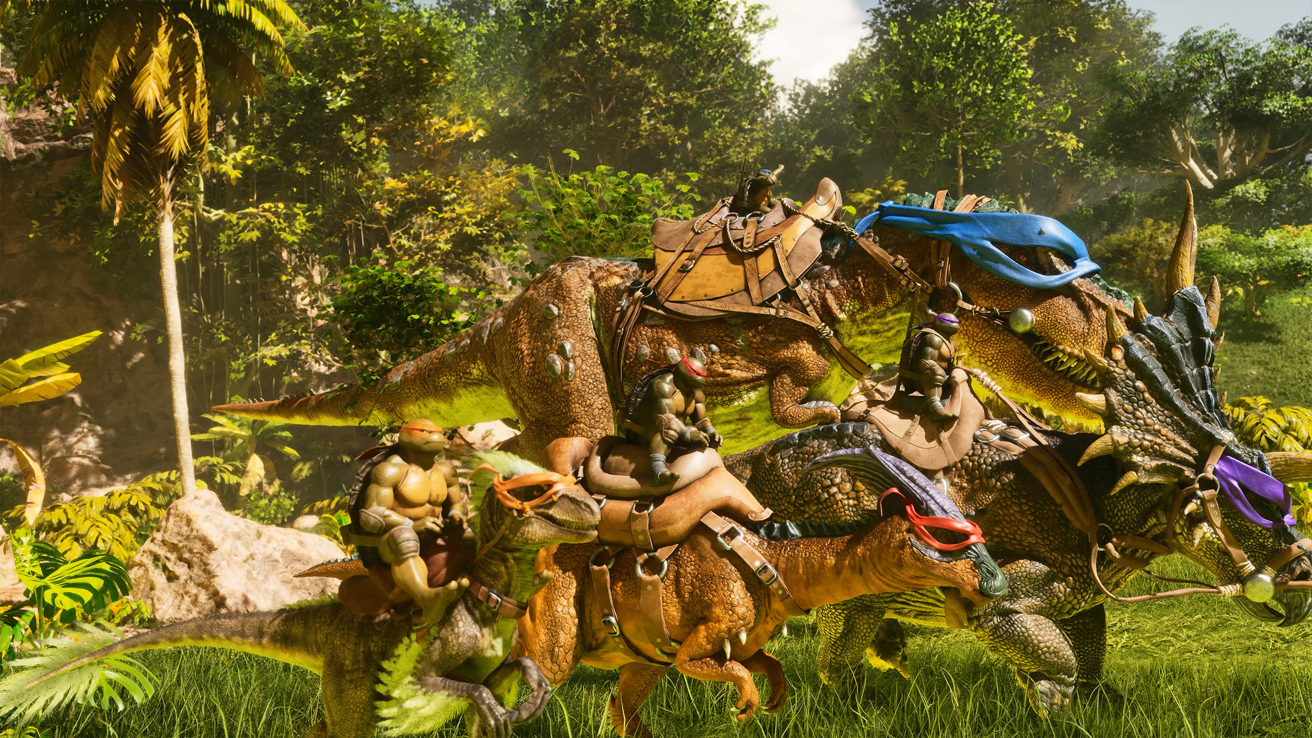 Cowabunga dude! Tie on your ninja masks, grab a slice of pizza, and unleash your favorite half-shelled heroes or diabolical villains with the [color=#85cb42]'ARK x Teenage Mutant Ninja Turtles' Cosmetic Pack![/color]
