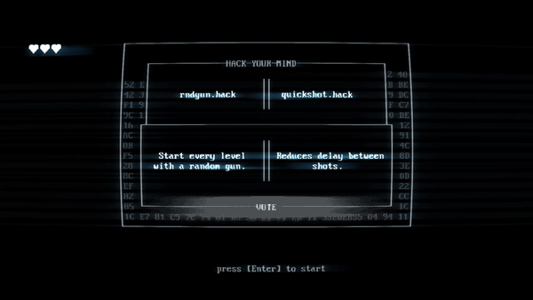 When a streamer has enabled the chat integration, all the shops in the game (standard runs, infinite mode, endless levels) will turn into Twitch chat-based shops. Control over which hack the player receives is now given to the viewers using the new chat voting system.